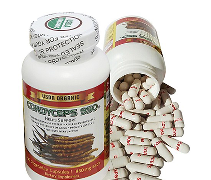 Thành phần: chiết xuất 100% từ loại Đông trùng hạ thảo loại tốt nhất, không có pha trộn, hàm lượng 950mg/1 viên nang (hiện trên thị trường hàm lượng chỉ khoảng 525mg/1 viên nang)