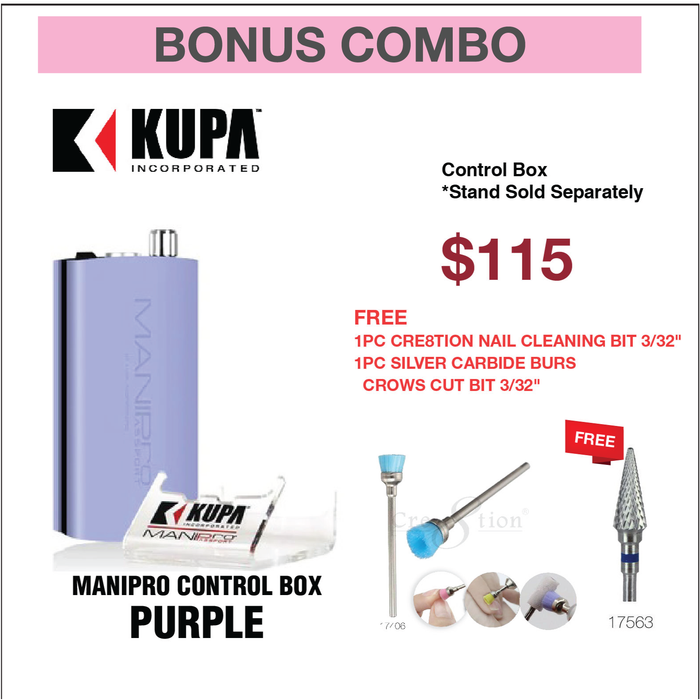 <p>This powerful, all new exclusive, portable electric nail file has been designed for the Professional Nail Technicians who demand power and portability. The MANI-PRO Passport® Control Box features a light weight battery powered *Acetone Resistant Finish* control box. This unit can provide anywhere from 8 to 10 hours of use per charge in either 110v or 220v. The MANI-PRO Passport® comes complete with a stainless steel belt clip and a plastic handpiece holster which can snap on either side of the control box. Control box is available in Purple, Red or White. Full one year parts and labor warranty with your Kupa E-file Control Box!</p><p><br></p><p>WARRANTY :</p><p>Unless the item is damaged or defective in shipping, all Manufacturer warranty needs to be claimed with the Manufacturer directly through their warranty and claims.</p><p><br></p><p> FEATURES:</p><p>* Ultra Smooth / Quiet / Vibration Free</p><p>* Acetone Resistant Finish Control Box</p><p>* Compact Light Weight</p><p>* Portable/Rechargeable</p><p>* 8-10 Hours of Battery Life</p><p>* Variable Speed Control</p><p>* Forward/ Reverse Button</p><p>* Illuminated Power Indicator</p><p>* High Torque / 30,000 RPM</p><p>* Quick Charge System - 2 Hours Full Charge</p><p>* Automatic switching 110/220 Volts</p><p>* Limited One Year Warranty </p>